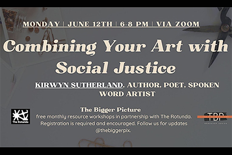 On Monday, June 12th, join us for Combining Your Art & Social Justice with Author, Poet, and Spoken Word Artist Kirwyn Sutherland.
