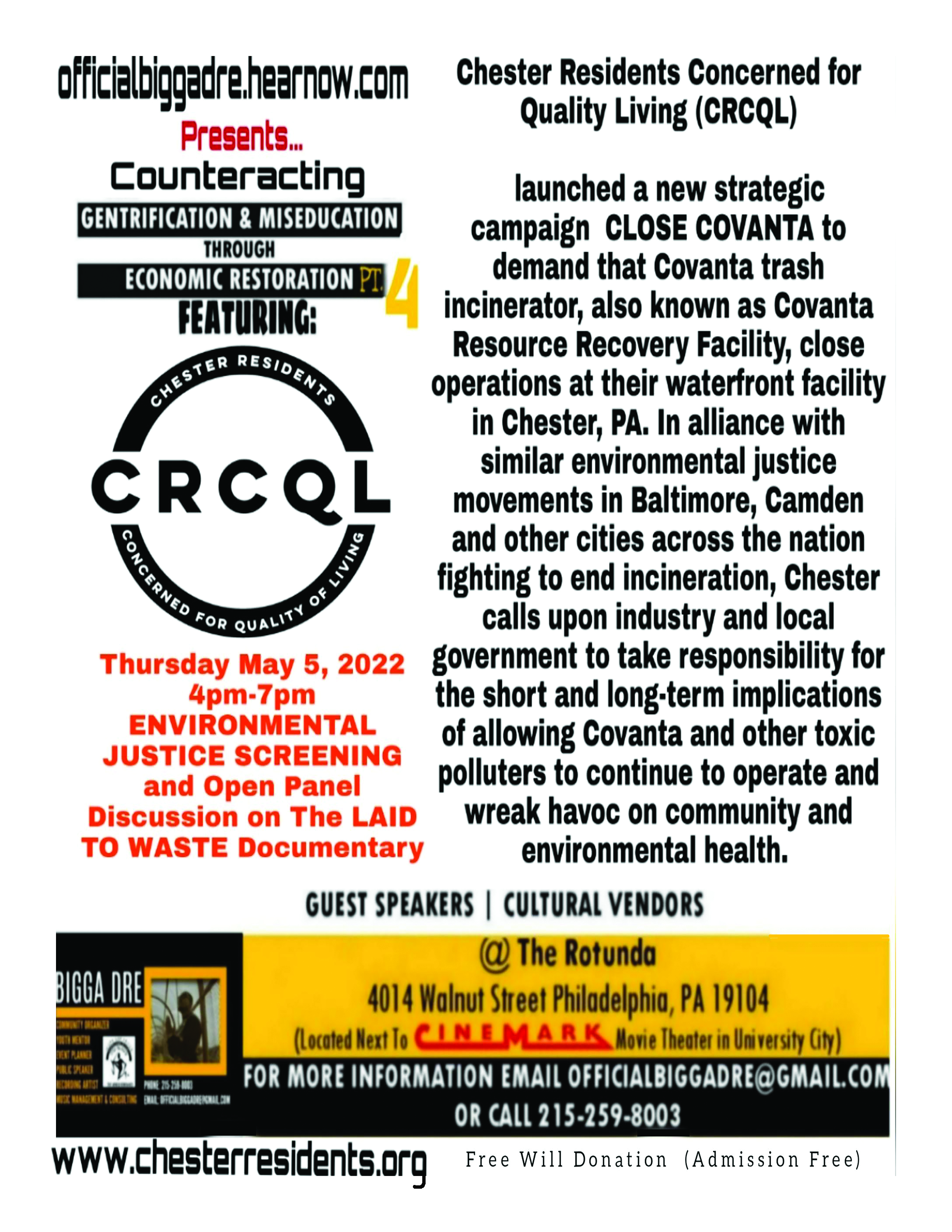 Admission is FREE but donations will be appreciated. Registration is encouraged. Please register at https://www.eventbrite.com/e/environmental-justice-money-power-politics-laid-to-waste-revisited-tickets-325170783567