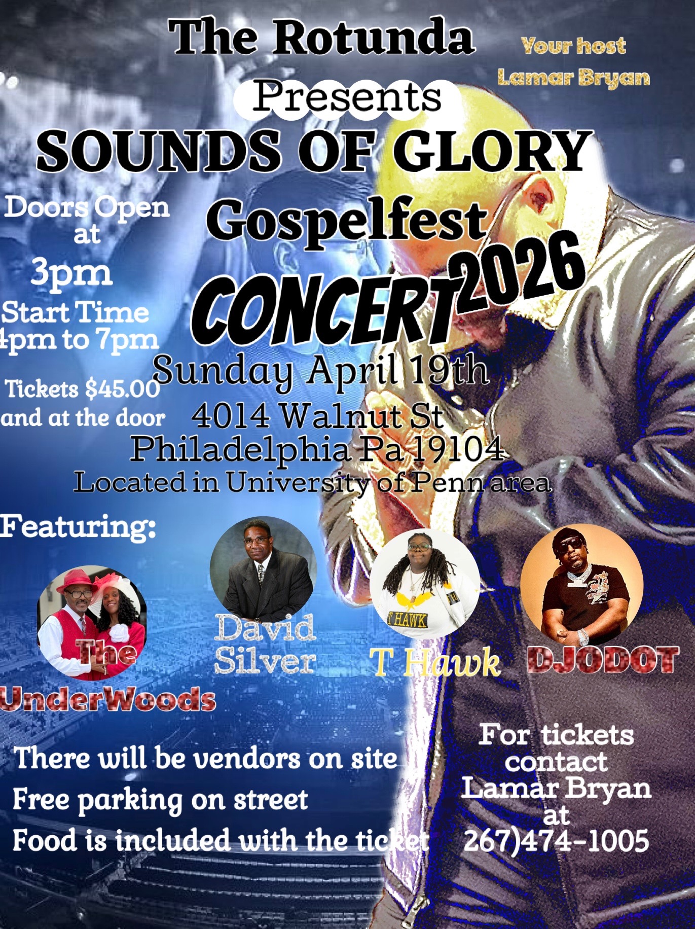 Tickets are $45 in advance and at the door. Food is included with the ticket. For tickets, please contact Lamar Bryan at 267-474-1005