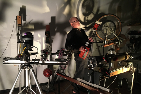 Since 1970, Neil Feather has been developing esoteric acoustic and engineering strategies to invent, design, and build a constantly developing collection of experimental musical instruments. Using an assortment of mechanical items, from strings and springs to motors and magnets, Feather’s inventions are works of art that are just as appropriately viewed in a gallery as they are on stage. His live performances on these instruments are naturally unique and serve as both sonically intriguing recitals as well as visually compelling demonstrations of his devices. A founding member of Baltimore’s Red Room Collective and the High Zero Foundation as well as a 2016 Guggenheim fellow, Feather was a part of the Bowerbird creative team that helped bring Mauricio Kagel’s Zwei Mann Orchester to life in 2018.