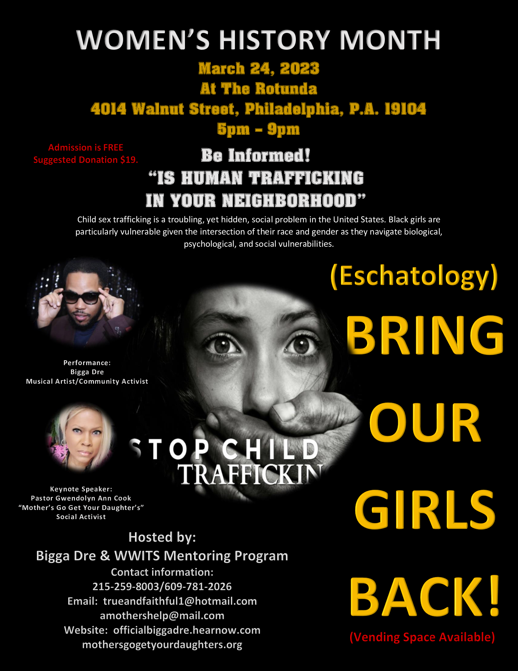 In-person! Bigga Dre presents: Philadelphia " WOMEN'S HISTORY MONTH" Human Trafficking Awareness Event "Bring Our Girls Back"