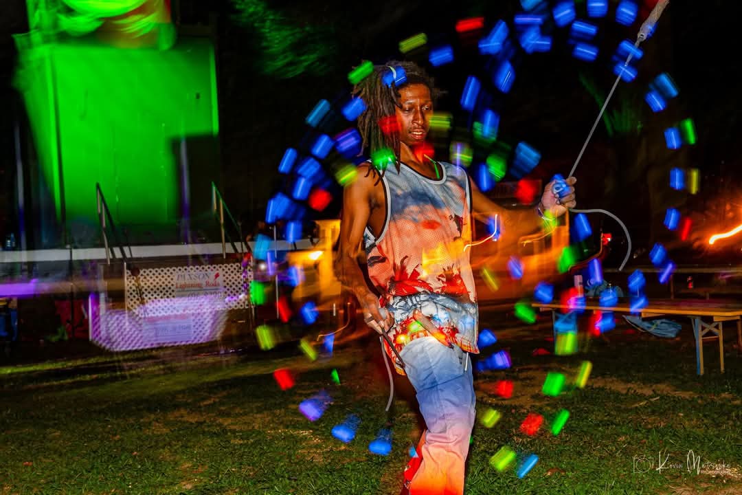 Bryce Iz Nyce is a dynamic force of movement and spectacle, blending athleticism with artistry in every performance. As a masterful fire spinner specializing in intricate poi tricks, Bryce lights up the night with hypnotic displays of skill and rhythm. Beyond the flames, he’s a professional Parkour and free-running athlete who has competed on the world stage in World Chase Tag, pushing the limits of speed, agility, and creativity. Off the course, Bryce shares his passion by teaching Parkour to kids and young adults, inspiring the next generation to move with confidence, discipline, and freedom. Whether leaping across rooftops or spinning fire under the stars, Bryce brings energy, precision, and heart to everything he does.