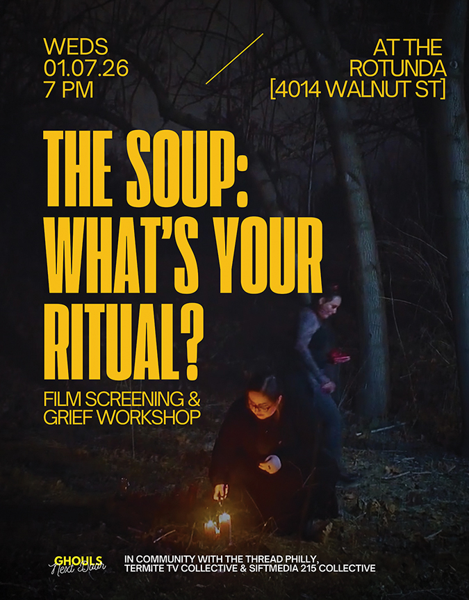 Let's come together with our community to share and nurture our relationship with grief and loss. What are your rituals for remembrance? In collaboration with The Thread, an art and grief collective, The Ghouls Next Door are screening their new horror-comedy film, The Soup.
